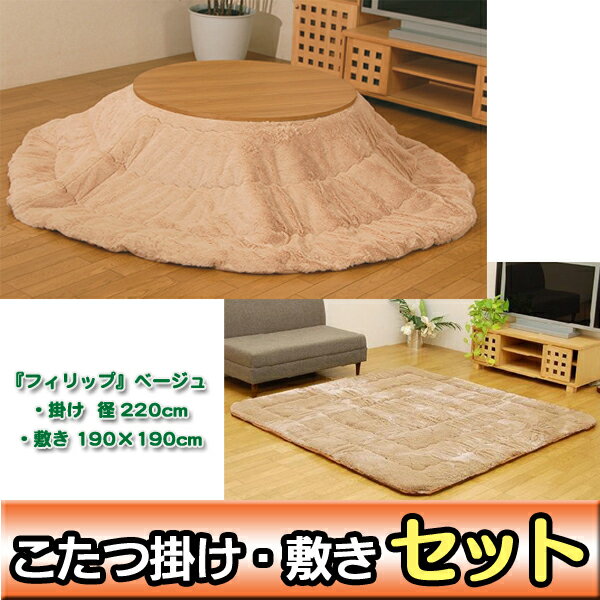 期間限定!《ポイント10倍実施中♪》【送料無料】【TD】こたつ掛・敷セット【円形110用】長毛マイクロファイバー フィリップ掛)径220cm 敷190×190 ベージュ