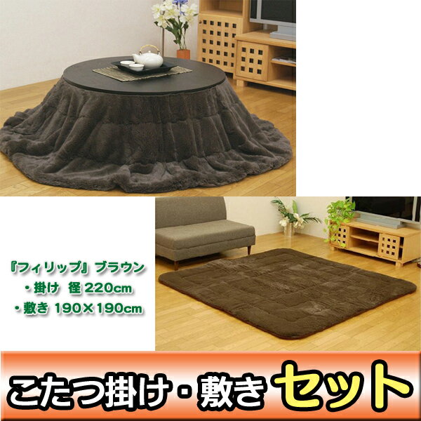 期間限定!《ポイント10倍実施中♪》【送料無料】【TD】こたつ掛・敷セット【円形110用】長毛マイクロファイバー フィリップ掛)径220cm 敷190×190ブラウン